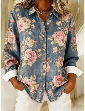 Per donna Camicia Blusa Bottoni Floreale Casual Manica Lunga Colletto a Camicia Top Regolari Quotidiano Ferie Uscire Blu Giallo Arancione Rosa Estate Primavera