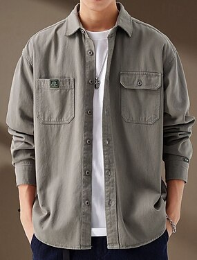 Per uomo camicia cargo Camicia da escursionismo Manica Lunga Collo ripiegato Top Esterno Traspirante Primavera Autunno Cotone Nero Caffè Grigio Caccia Allenamento Viaggio