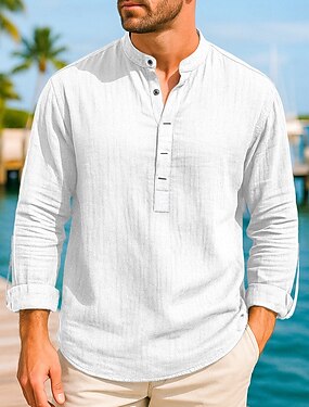 Per uomo Camicia di lino Camicia popover Camicia Estiva Abbigliamento da spiaggia Camicia casual Camicia con colletto alla coreana Semplice Vacanza Camicia hawaiana Nero Bianco Rosa Blu Manica Lunga