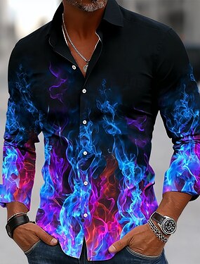 Per uomo Leone Camicia Camicia con bottoni Manica lunga Astratto Da tutti i giorni Per uscire Primavera estate Collo ripiegabile Stampa Bottone giù Giallo Rosso Blu Viola Verde