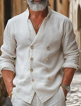 Per uomo Camicia Camicia di lino Camicia casual Camicia con Bottoni Camicia di cotone Semplice Vacanza Camicia hawaiana Nero Bianco Rosa Grigio Manica Lunga Bavero Primavera Autunno Abbigliamento