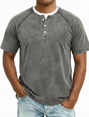 Per uomo Maglietta Top Henley Maglietta di cotone Camicia lavata Manica Corta Tinta unica Semplice Tinta unita Vintage Designer Casual Tinto in capo Sbiadito Bottoni Henley Casuale Quotidiano