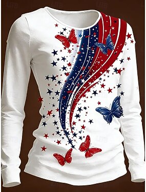 Giorno dell'Indipendenza Maglietta Patriottica da Donna Stampa Grafica Bandiera Moda Stile Classico Manica Lunga Collo Rotondo Regular Tops Giornaliero Weekend Blu Bianco Estate Primavera Autunno