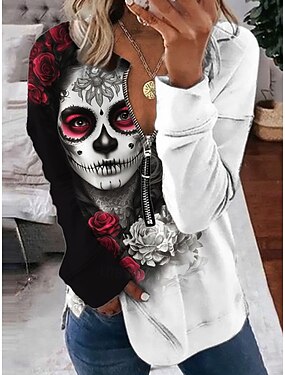Felpa da donna Pullover Felpe con Zip Stampa Teschi Grafica Moda Casual Manica Lunga Collo Rotondo Regular Tops Street Dailywear Stampa Con Cerniera Rossa Arancione Verde Primavera Autunno Inverno