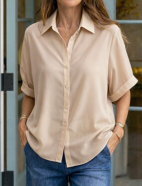 Per donna Camicia 100% cotone Quotidiano Affari Manica Corta Ad aletta Collo Alto Top Regolari Quotidiano Lavoro Blu Giallo Verde chiaro Azzurro cielo Grigio chiaro Estate