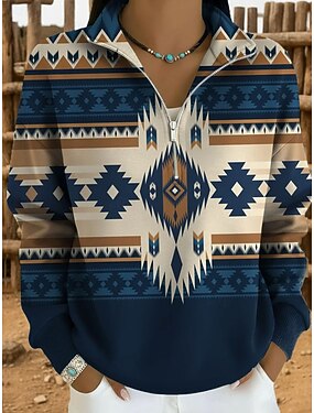 Per donna Felpa Pullover Cerniera Grafico Geometrico Casual Manica Lunga Mezza zip Top Regolari Casuale Abbigliamento Quotidiano Ferie Blu marino Arancione Cachi Autunno