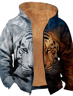 Per uomo Tigre Pile Felpa con Cappuccio Felpa Moda Quotidiano Semplice Casual Girocollo All'aperto Arrampicata Nero Con zip Autunno Inverno progettista S M L XL 2XL 3XL