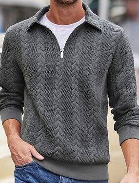 Per uomo Magliette Polo a Nido d'Ape Testurizzato Casuale Sport & Outdoor Con cerniera Zip a un quarto Manica Lunga Moda Moderno Con zip Tasca Primavera Autunno Primavera & Autunno Vestibilit