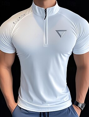 Per uomo Polo con zip a un quarto Camicia da golf Golf Giornaliero Per eventi Collo ripiegabile Manica corta Di tendenza Essenziale Strisce Primavera estate Standard Rosso Cachi Azzurro cielo Grigio