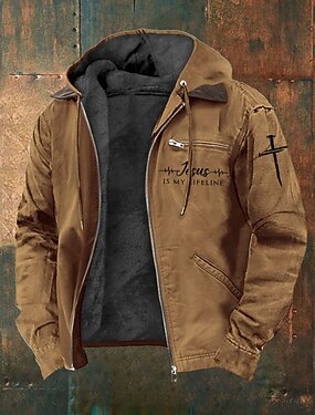 Per uomo Felpa con cappuccio a zip intera Giacca in Pile Felpa con cappuccio in pile Nero Verde militare Blu marino Marrone Grigio scuro Con Cappuccio Lettera Croce Cerniera Tasca Casuale Quotidiano