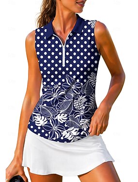 Per donna A Pois Floreale Top Maglietta sportiva Polo da golf Maglia da tennis Senza Maniche Cerniera Floreale UPF50+ Resistente ai Raggi UV Alta elasticità Traspirante Pallavolo Tennis Golf Collo