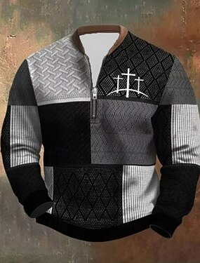 Per uomo Blocco di colori Croce Felpa con cerniera a un quarto Felpe Manica Lunga Felpa Collo con zip Vintage Retrò Stampa Ferie Uscire Stampato Autunno Inverno