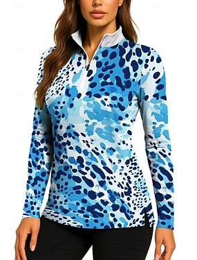 Per donna Leopardo Sfumatura Top Polo da golf Maglia da tennis Maglietta da tennis Manica Lunga Stampato Zip a un quarto Pullover Protezione UV Elastico Traspirante Tennis Golf Pickleball Collo alla