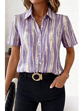 Camicia da donna manica corta grafica a strisce astratta vintage tropicale elegante colletto normale top quotidiani viola verde khaki estate primavera