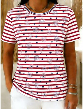 Giorno dell'Indipendenza Americana Per donna Maglietta Stampato Grafico A righe Elegante Classico Casual Manica Corta Girocollo Top Regolari Quotidiano Uscire Weekend Rosso Estate Primavera