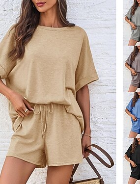 Per donna Set di Pantaloncini Bolero Top Manica Corta Girocollo Tinta unica Coulisse Moda Streetwear Casuale Quotidiano All'aperto Blu Nero Marrone Estate Vestibilità comoda