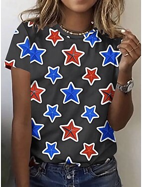 Giorno dell'Indipendenza Americana Per donna Maglietta Stampato Grafico Bandiera Stella Elegante Classico Casual Manica Corta Girocollo Top Regolari Quotidiano Nero Bianco Rosso Estate Primavera