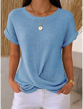 Per donna Maglietta Stampato Foro Tinta a nodi Moda Elegante Classico Manica Corta Girocollo Top Regolari Quotidiano Uscire Weekend Blu Rosa Vino Azzurro cielo Viola Estate Primavera