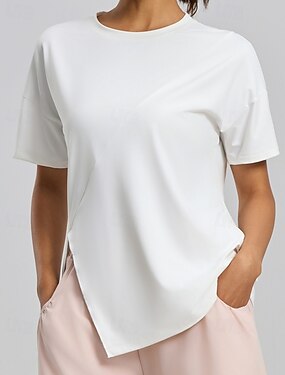 Per donna Tinta unita Maglia atletica Maglia da tennis Maglietta da tennis Top sportivo Manica Corta Spacco Asciugatura Rapida Traspirante Tennis Pickleball Corsa Girocollo Maglietta Top Nero Bianco