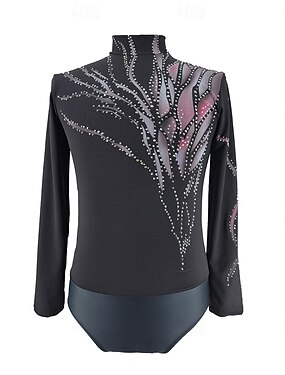 Top da pattinaggio artistico, giacca da pattinaggio sul ghiaccio da donna, nera, patchwork, spandex, elasticizzata, allenamento, competizione, abbigliamento da pattinaggio, termico, caldo, classico, manica lunga, pattinaggio sul ghiaccio, pattinaggio arti
