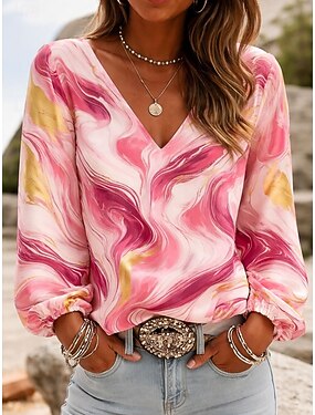 Per donna Camicia Bottoni Stampato Grafico Astratto Vintage Elegante Moderno Manica Lunga Colletto a Camicia Top Regolari Quotidiano Blu Bianco Rosa Arancione Estate Primavera