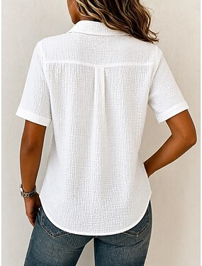 Per donna Camicia 100% cotone Blusa Arricciato Semplice Quotidiano Essenziale Casual Manica Corta Colletto a Camicia Top Regolari Quotidiano Uscire Blu Bianco Blu marino Estate