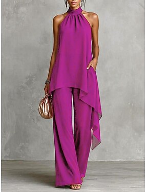 Per donna Set di Pantaloni Senza Maniche Collo quadrato Semplice Arricciato Elegante Moda Streetwear Casuale Quotidiano All'aperto Nero Rosso Beige Estate Vestibilità regolare Vestibilità comoda