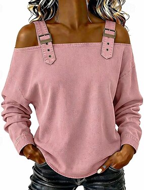 Per donna Camicia popover Camicia casual Blusa Tinta unica Elegante Moda Essenziale Manica Lunga Collo ripiegato Scollo a V Top Regolari Quotidiano Ferie Blu Bianco Rosa Grigio Estate Primavera