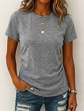Per donna Elegant Elegante Top in raso Canotta Semplice Moda Moderno Manica Corta Collo di pile Top Regolari Quotidiano Uscire Weekend Grigio Estate