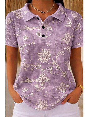 Per donna Top estivi Grafico Geometrico Elegante Vintage Senza Maniche Manica Corta Colletto a Camicia Top Regolari Casuale Quotidiano Giallo Viola Arancione Estate Primavera