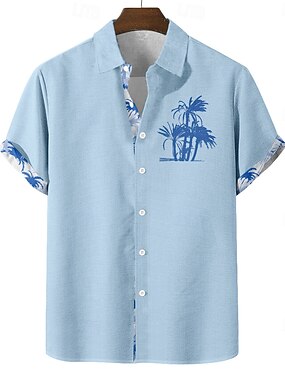 Per uomo Albero di Cocco Palma di Cocco Piante Tropicali Camicia Camicia con colletto cubano Camicia hawaiana estiva Manica Corta Hawaiano Vacanza Ferie Abbigliamento mare Estate Primavera Camicia