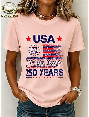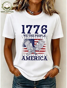 Giorno dell'Indipendenza Americana Per donna 100% cotone Maglietta Stampato Bandiera Americana Moda Essenziale Manica Corta Girocollo Top Regolari Casuale Weekend Beige chiaro Nero Bianco Rosa Blu