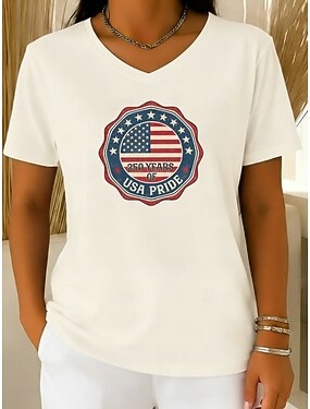 Giorno dell'Indipendenza Americana Per donna Maglietta Stampato Grafico Bandiera Americana Elegante Classico Casual Manica Corta Scollo a V Top Regolari Quotidiano Weekend Abbigliamento mare Blu Nero