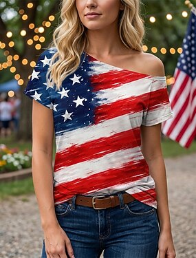 250° anniversario USA Retrò Vintage Anni '80 T-shirt Monospalla Maniche corte Bandiera USA Costume Per donna 4 Luglio Giorno dell'Indipendenza Adulti Maglietta