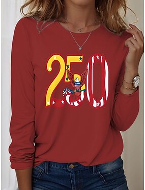 Maglietta patriottica da donna per il 250° anniversario americano Giorno dell'Indipendenza con stampa grafica della bandiera americana elegante classica casual maniche corte collo rotondo regolare