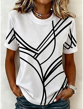 Per donna Maglietta Stampato A strisce Grafico Geometrico Elegante Classico Casual Manica Corta Girocollo Top lunghi Casuale Quotidiano Bianco Estate Primavera