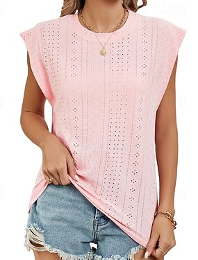 Per donna Blusa con texture Top traforato Maglietta traforata Canotta Traforato Tinta unica Elegante Classico Casual Senza Maniche Girocollo Top Regolari Casuale Quotidiano Spiaggia Nero Bianco Rosa