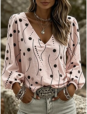 Per donna Camicia Stampato Grafico Geometrico Bohemien Vacanza Vintage Manica Lunga Manica a Lanterna Scollo a V Top Regolari Casuale Quotidiano Ferie Blu Bianco Giallo Rosa Viola Estate Primavera
