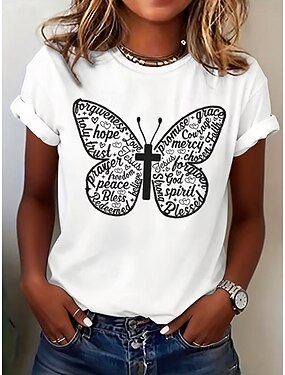 Per donna Maglietta Grafico Lettera Elegante Classico Casual Manica Corta Girocollo Top Regolari Quotidiano Uscire Weekend Blu Cenere Nero Bianco Rosa Estate Primavera red friday
