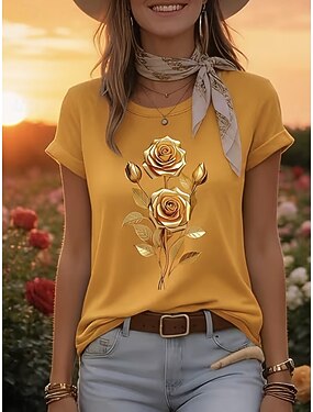 Per donna Maglietta Stampato Floreale Grafico Elegante Classico Casual Manica Corta Girocollo Top Regolari Quotidiano Bianco Giallo Rosa Viola Estate Primavera