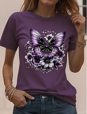 Per donna Maglietta Stampato Floreale Grafico Libellula Vintage Moda Elegante Manica Corta Girocollo Top Regolari Casuale Quotidiano Weekend Blu Giallo Viola Estate Primavera