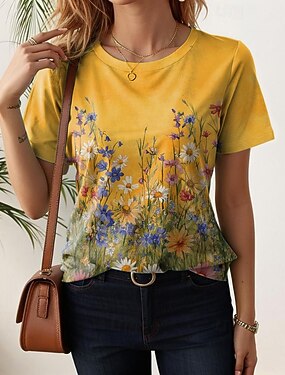 Per donna Maglietta Stampato Floreale Grafico Piante Moda Elegante Classico Manica Corta Girocollo Top Regolari Casuale Quotidiano Weekend Blu Giallo Rosa Viola chiaro Estate Primavera
