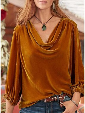 Per donna Velluto Elegant Elegante Blusa Arricciato Semplice Elegante Manica Lunga Scollo a V Top Regolari Quotidiano Ferie Uscire Blu Nero Vino Viola Verde Primavera Autunno