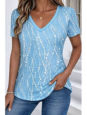 Per donna Maglietta Stampato Grafico A Pois Elegante Classico Casual Manica Corta Scollo a V Top Regolari Quotidiano Blu Nero Rosso Viola Verde Estate Primavera