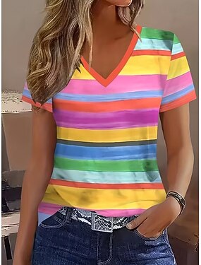 Per donna Maglietta Stampato Ombre Grafico Astratto Elegante Classico Casual Manica Corta Girocollo Top Regolari Quotidiano Arcobaleno Estate Primavera