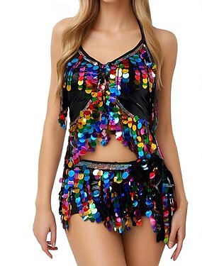 Abbigliamento da ballo Samba 2 pezzi Donna Dress da danza del ventre top reggiseno con paillettes e frange sciarpa per le anche Set carnevale clubwear|l Costume da spettacolo