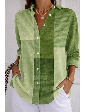 Per donna Camicia Camicia a nido d'ape Camicia casual Bottoni Grafico Geometrico Vintage Elegante Manica Lunga Top Regolari Quotidiano All'aperto Abbigliamento casual alla moda Verde primavera Giallo
