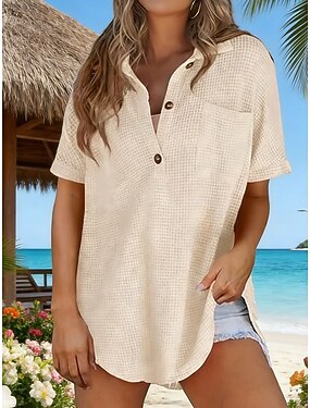 Per donna Camicia Blusa Bottoni Semplice Attivo Elegante Manica Corta Scollo a V Top Regolari Quotidiano All'aperto Ferie Blu Nero Bianco Vino Albicocca Estate Primavera