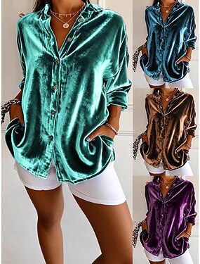 Per donna Velluto Blusa Top Eleganti Arricciato Patchwork Bottoni Semplice Elegante Vintage Signore Manica Lunga Colletto a Camicia Top lunghi Quotidiano Lavoro Ferie Marrone rossastro Viola chiaro
