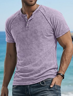 Per uomo Vintage Lavato Camicia di cotone Top Henley Camicia lavata con acido Manica Corta Vintage Designer Casual Casuale Quotidiano All'aperto Estate Primavera Tutte le stagioni Blu chiaro Viola